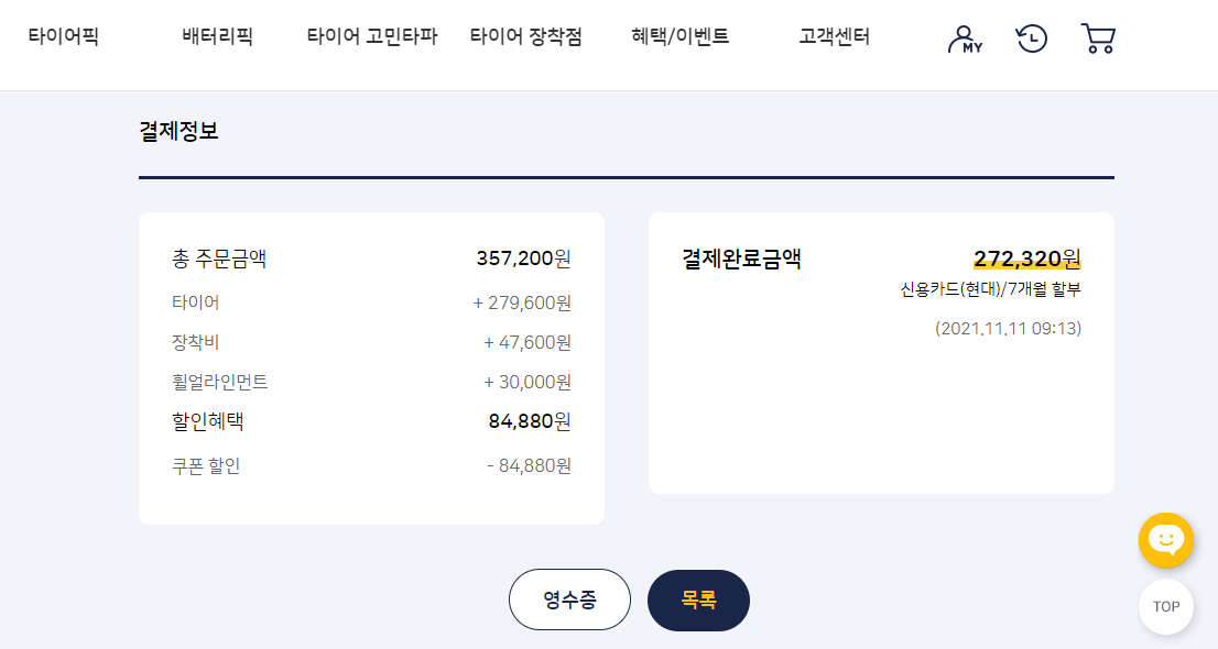 처음엔 타이어 제조사 홈페이지 이용도 고려하고..